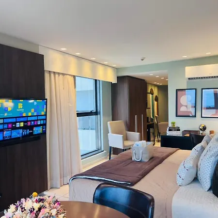 Das 1-Zimmer-Frente Mar - Beach Class Internacional - Flat Boa Viagem Recife liegt im Stadtteil Boa Viagem von Recife, lediglich 8 Minuten zu Fuß von der Kirche Nossa Senhora da Boa Viagem entfernt. Gäste können WLAN sowohl für geschäftliche als auch für private Zwecke nutzen.